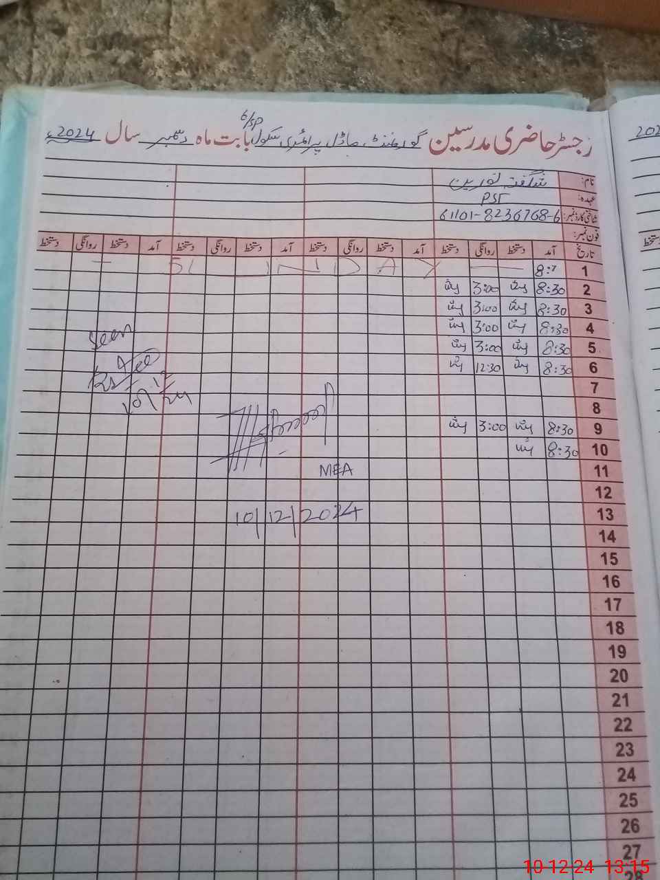 | Name: SH**** NO**** Designation: (School Headmaster's/Headmistress's) PST Phone/Cell Number: 03**** |