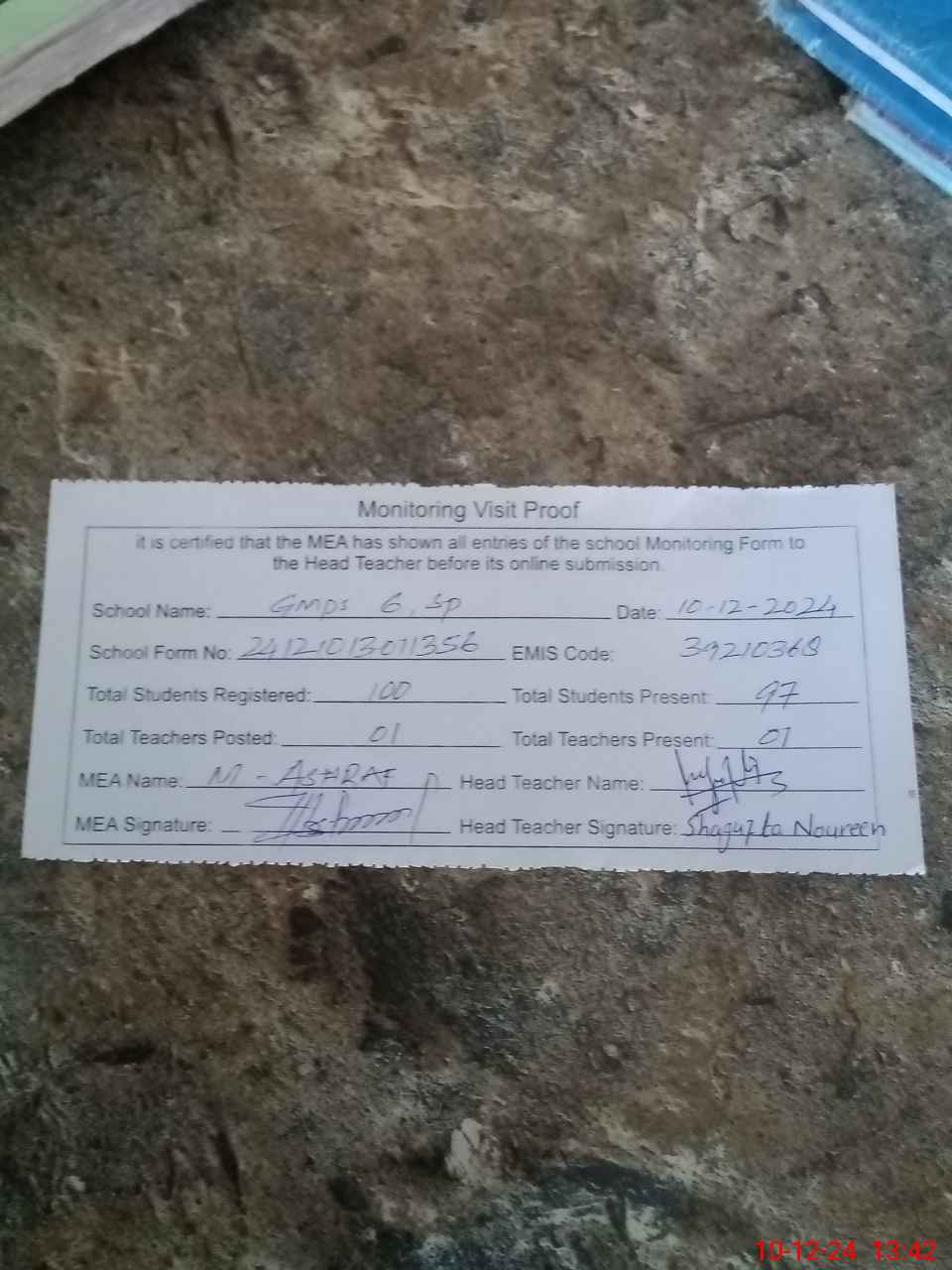 | EMIS Code: 39210368 | Name of School: GMPS 6/SP | |||