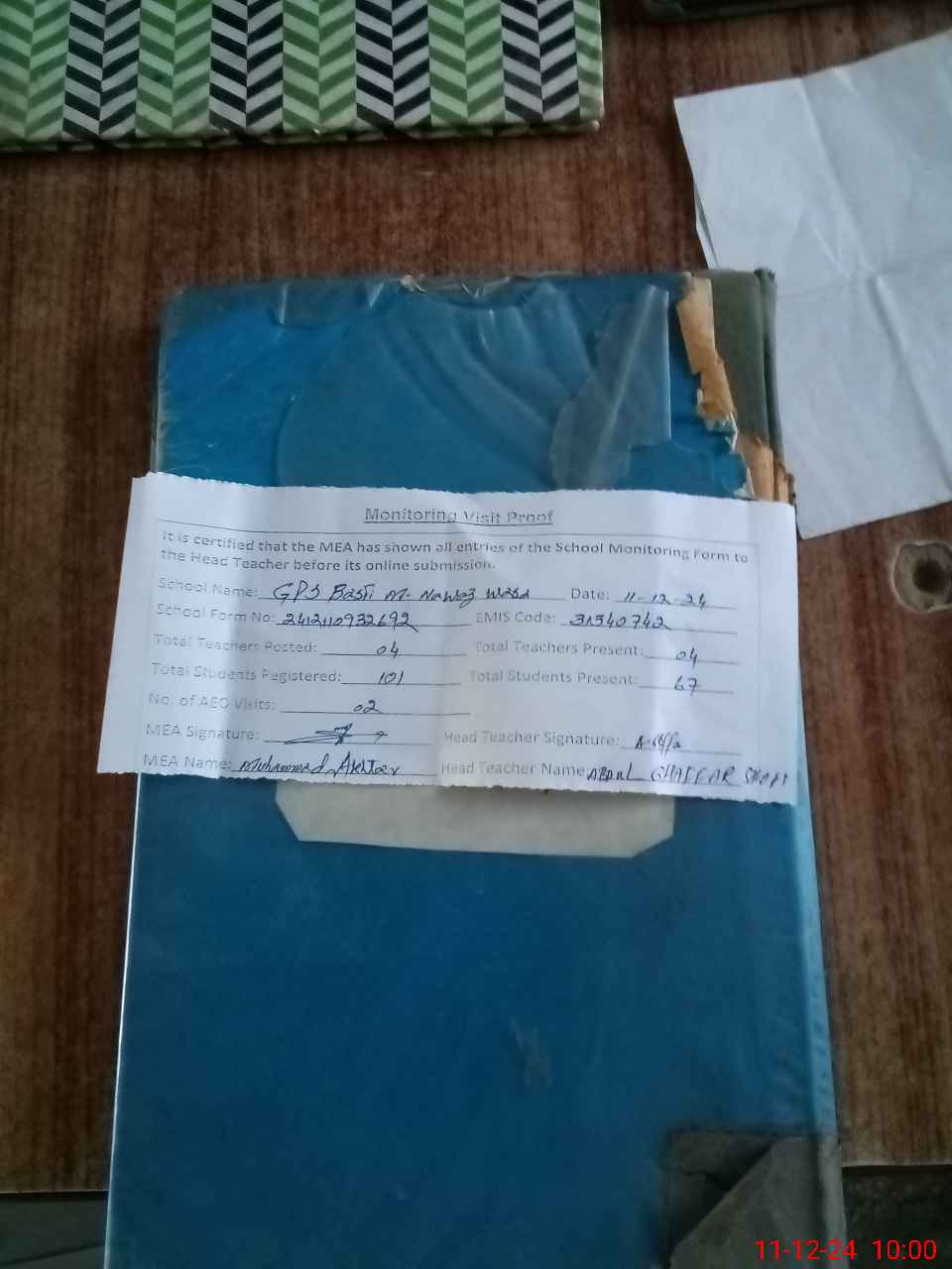 | EMIS Code: 31340742 | Name of School: GPS BASTI M.NAWAZ WASA | |||