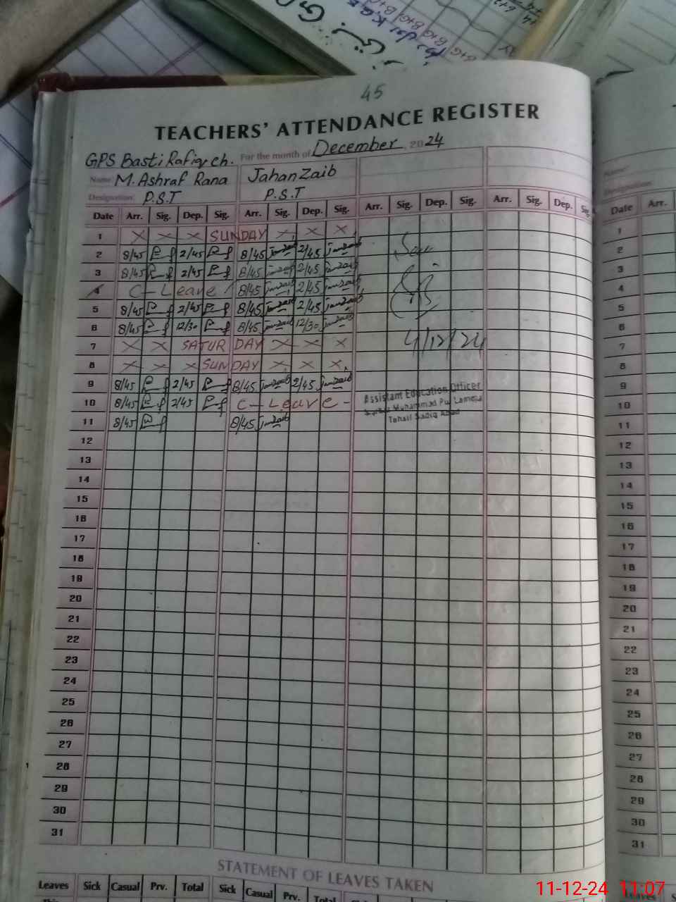 | CNIC | Full Name | Designation | R/C | Absence during last cal. month |