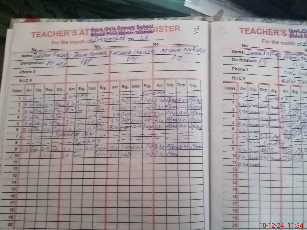 | Name: TA**** RA**** Designation: (School Headmaster's/Headmistress's) PST Phone/Cell Number: 03**** |