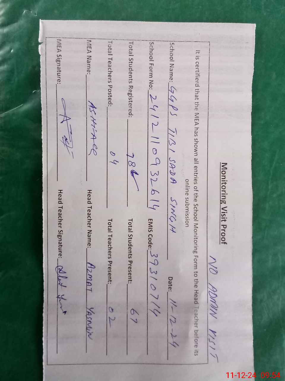 | EMIS Code: 39310714 | Name of School: GGPS TIBI SADA SINGH | |||