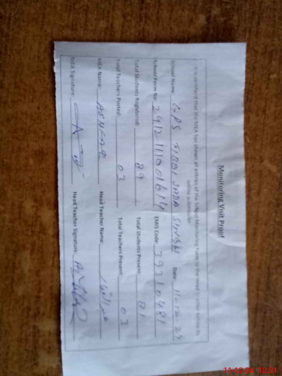| EMIS Code: 39310481 | Name of School: GPS TIBBI SADA SINGH | |||