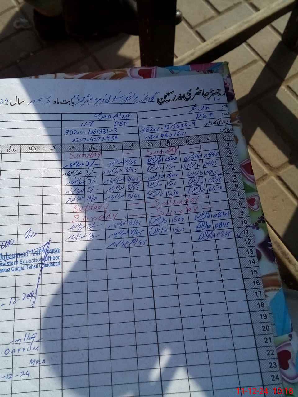 | Name: Ab**** Ja**** Designation: (School Headmaster's/Headmistress's) PST/PTC/JV Phone/Cell Number: 03**** |