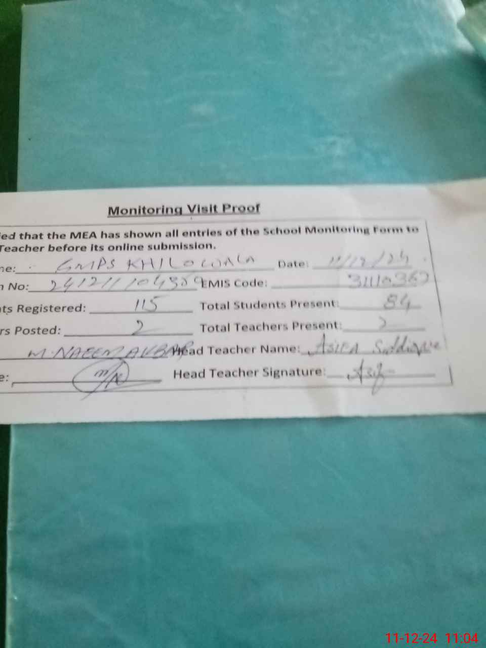 | EMIS Code: 31110367 | Name of School: GMPS KHILO WALA | |||