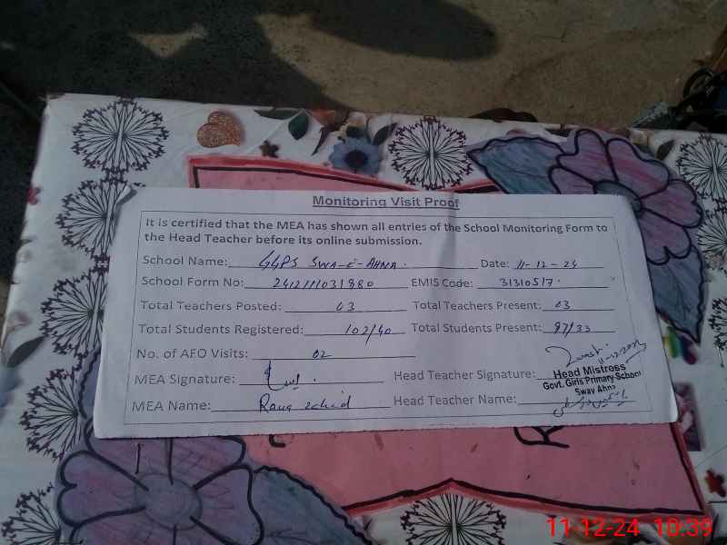 | EMIS Code: 31310517 | Name of School: GGPS SWA E AHNA | |||