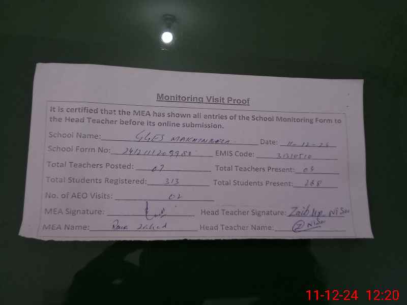 | EMIS Code: 31310510 | Name of School: GGES MAKHAN BELA | |||