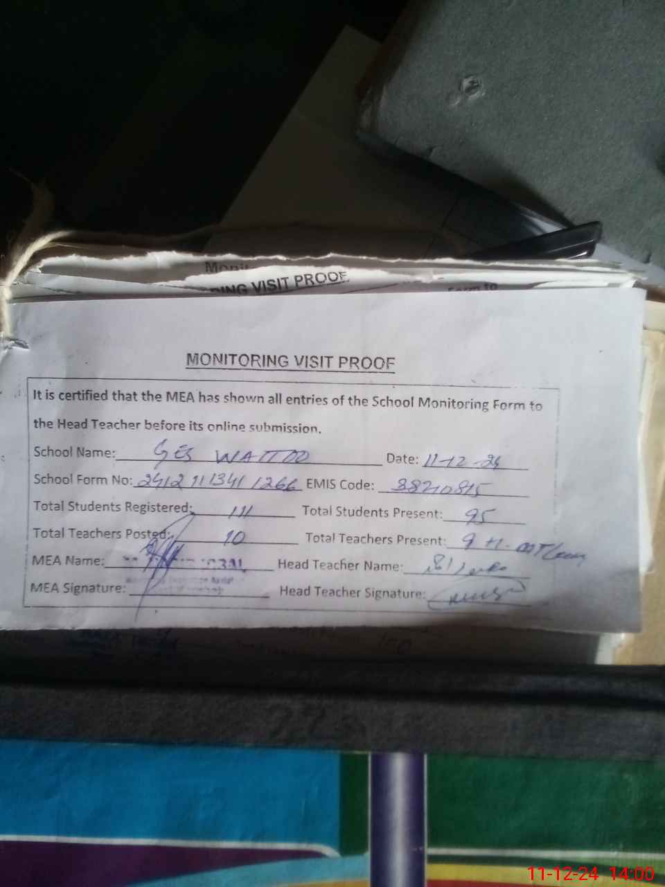 | EMIS Code: 38210815 | Name of School: GES WATOO | |||