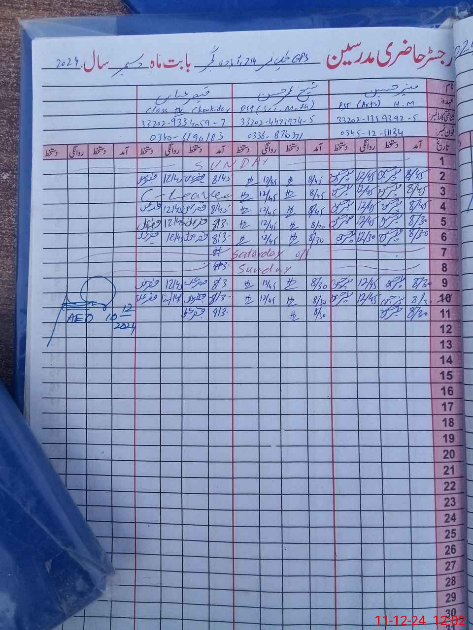 | Name: SA**** UL**** KH**** Designation: (School Headmaster's/Headmistress's) PST Phone/Cell Number: 03**** |