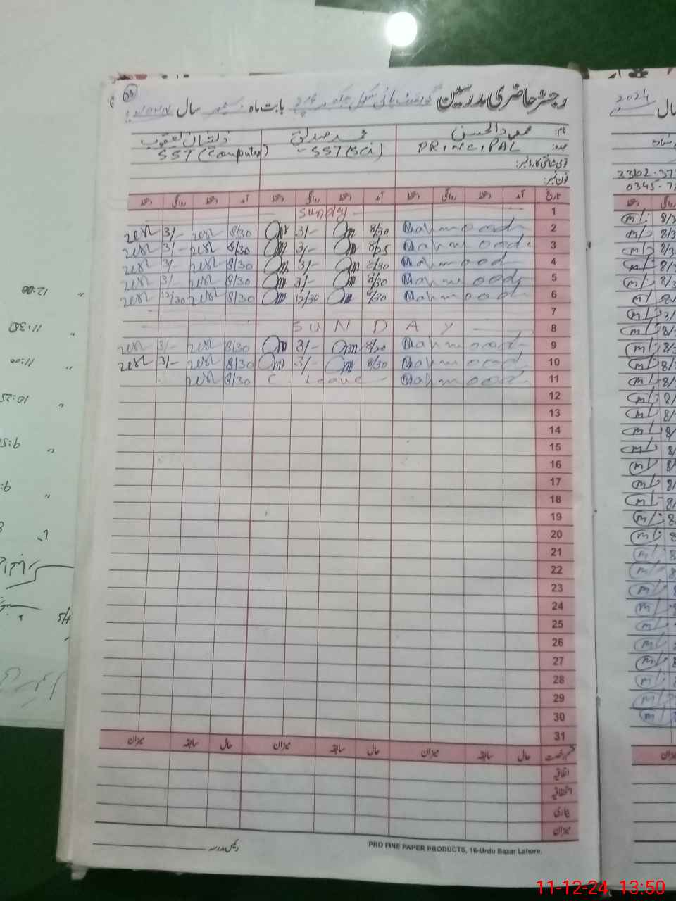 | CNIC | Full Name | Designation | R/C | Absence During Last Calender Month |