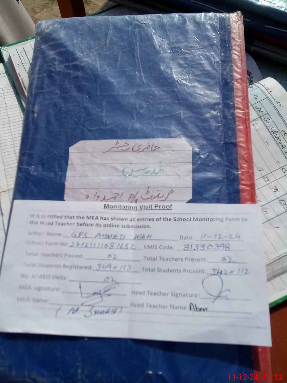 | EMIS Code: 31330398 | Name of School: GPS AHMED WAH | |||