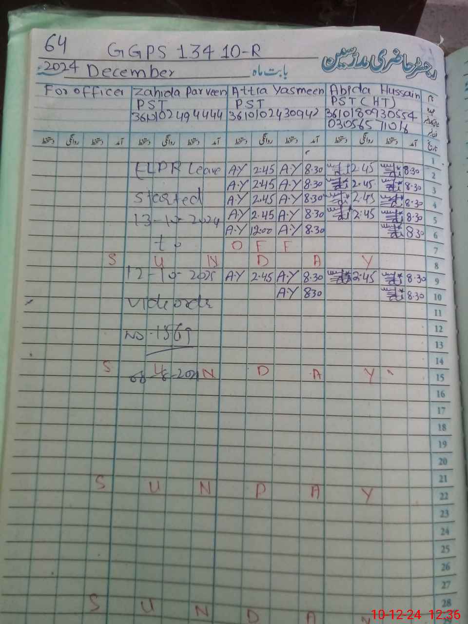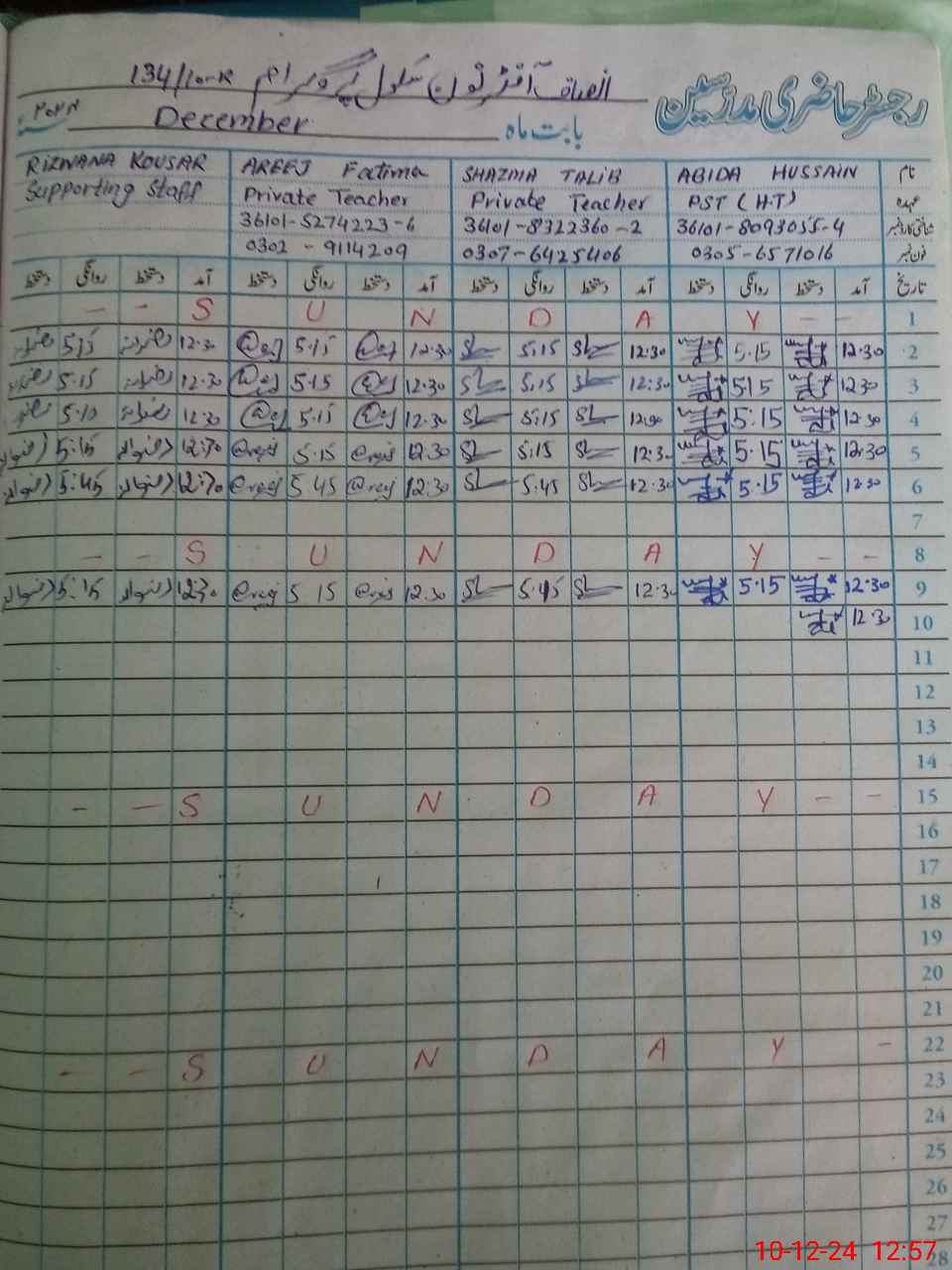 | CNIC | Full Name | Designation | R/C | Absence During Last Calender Month |