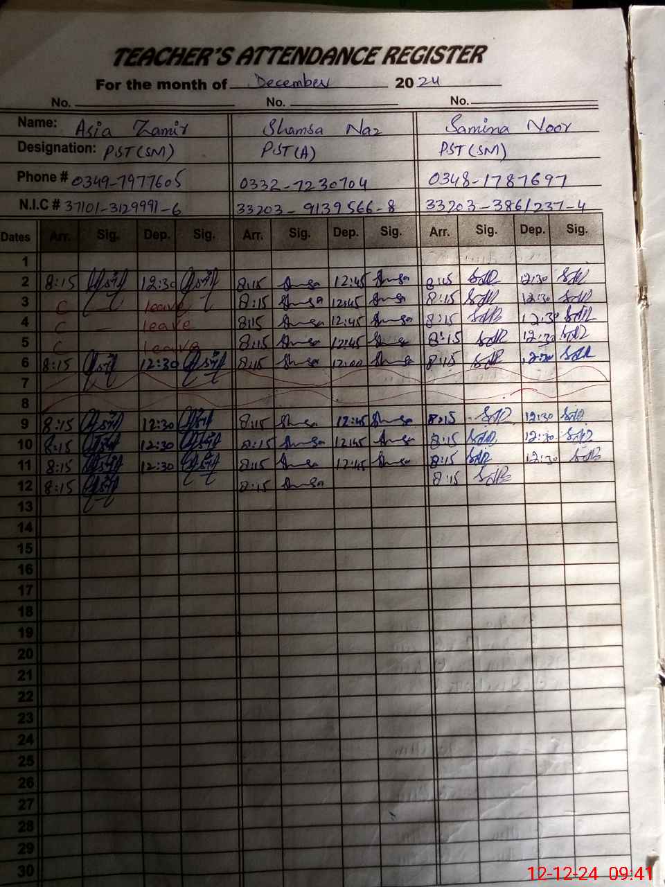 | Name: AS**** ZA**** Designation: (School Headmaster's/Headmistress's) PST Phone/Cell Number: 03**** |