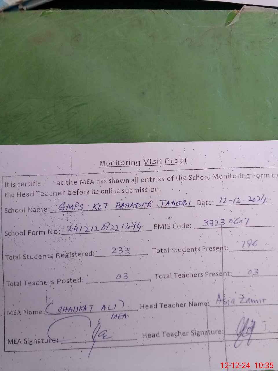 | EMIS Code: 33230607 | Name of School: GMPS KOT BAHADUR JANUBI | |||