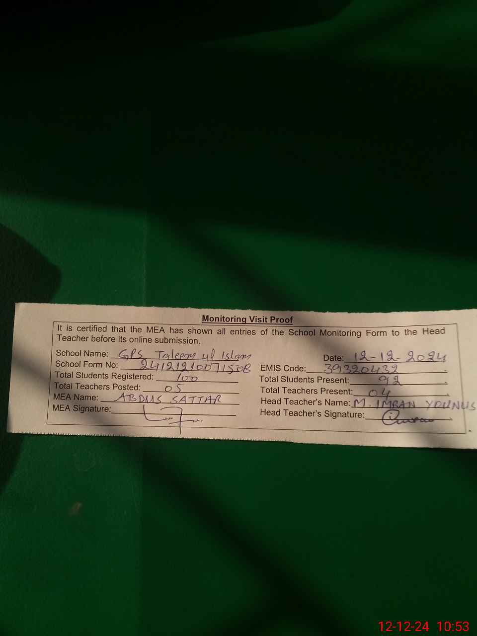 | EMIS Code: 39320432 | Name of School: GPS TALEEM-UL-ISLAM | |||