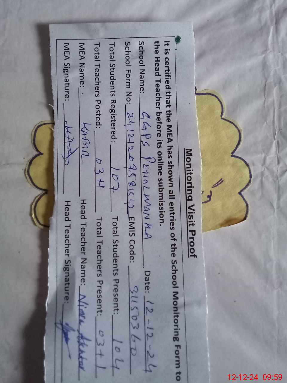 | EMIS Code: 31150360 | Name of School: GGPS PAHALWAN KA | |||
