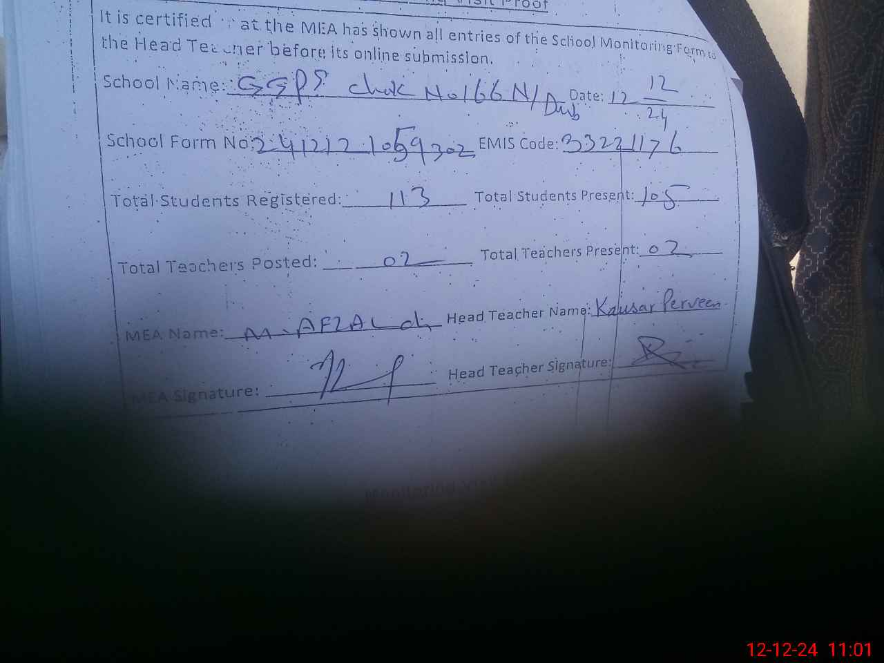 | EMIS Code: 33221176 | Name of School: GGPS CHAK NO 166 NIKAY DUB | |||