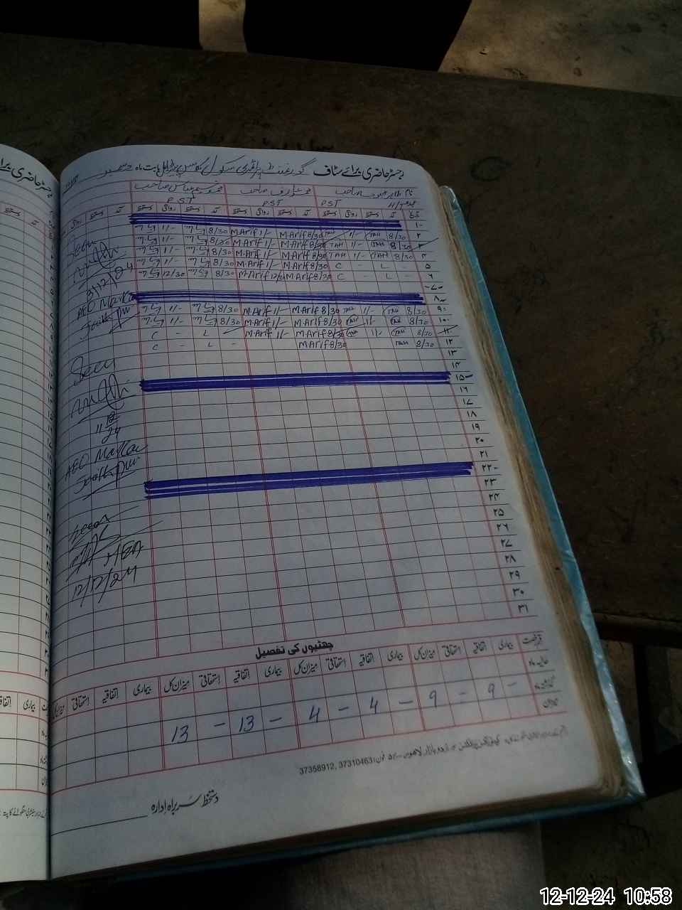 | CNIC | Full Name | Designation | R/C | Absence During Last Calender Month |