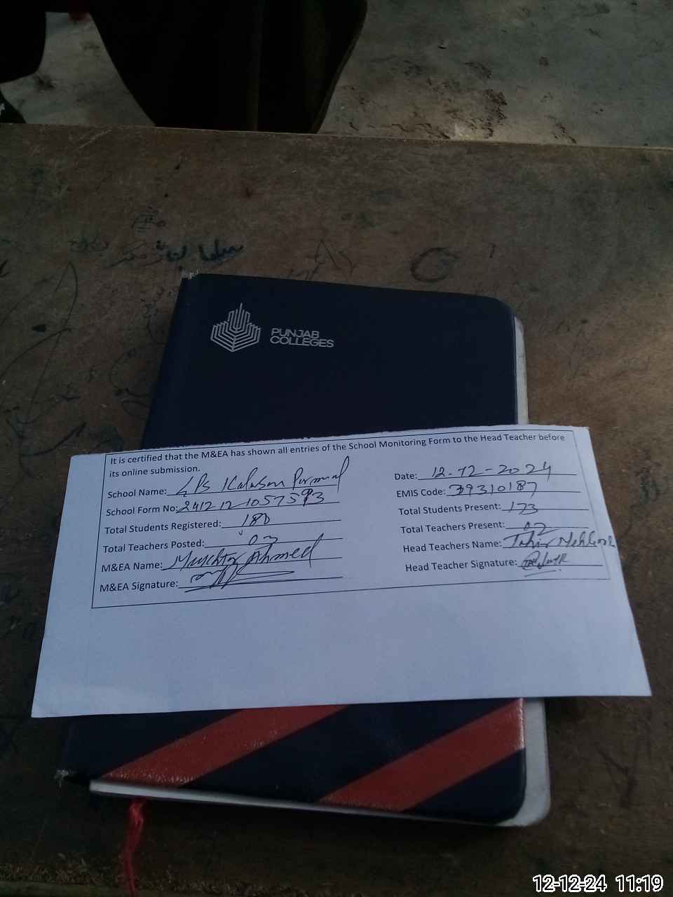 | Attendance Register | Head Teacher | MEA with School | Visit Proof |