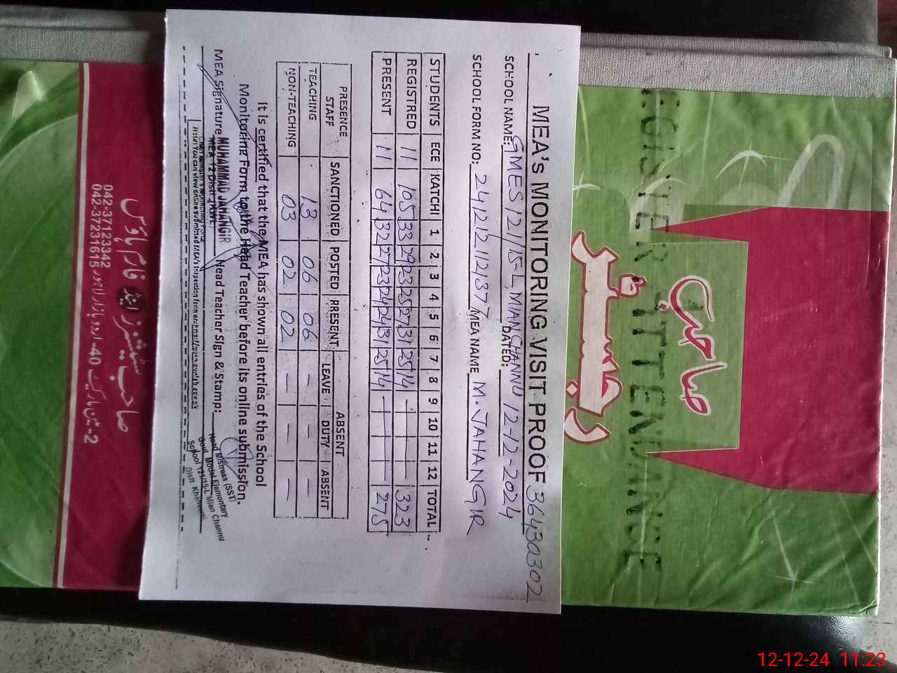 | EMIS Code: 36430302 | Name of School: GGES 121/15-L MIAN CHANNU | |||