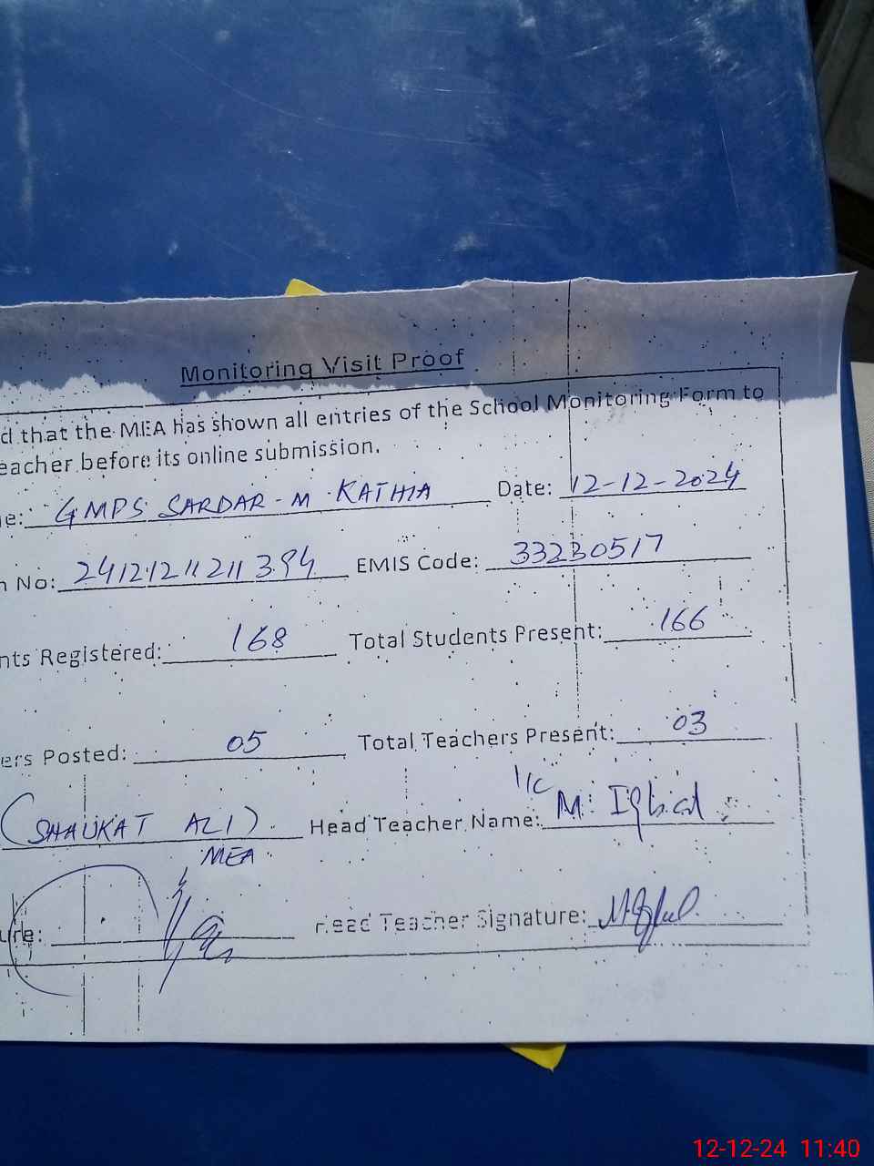 | EMIS Code: 33230517 | Name of School: GMPS SARDAR MUHAMMAD KATHIA | |||
