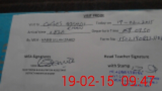 | School Visited by School Health & Nutrition Supervisor (No. of Visits) | 1 | Name1: | M USMAN TALIB | Name2: | |