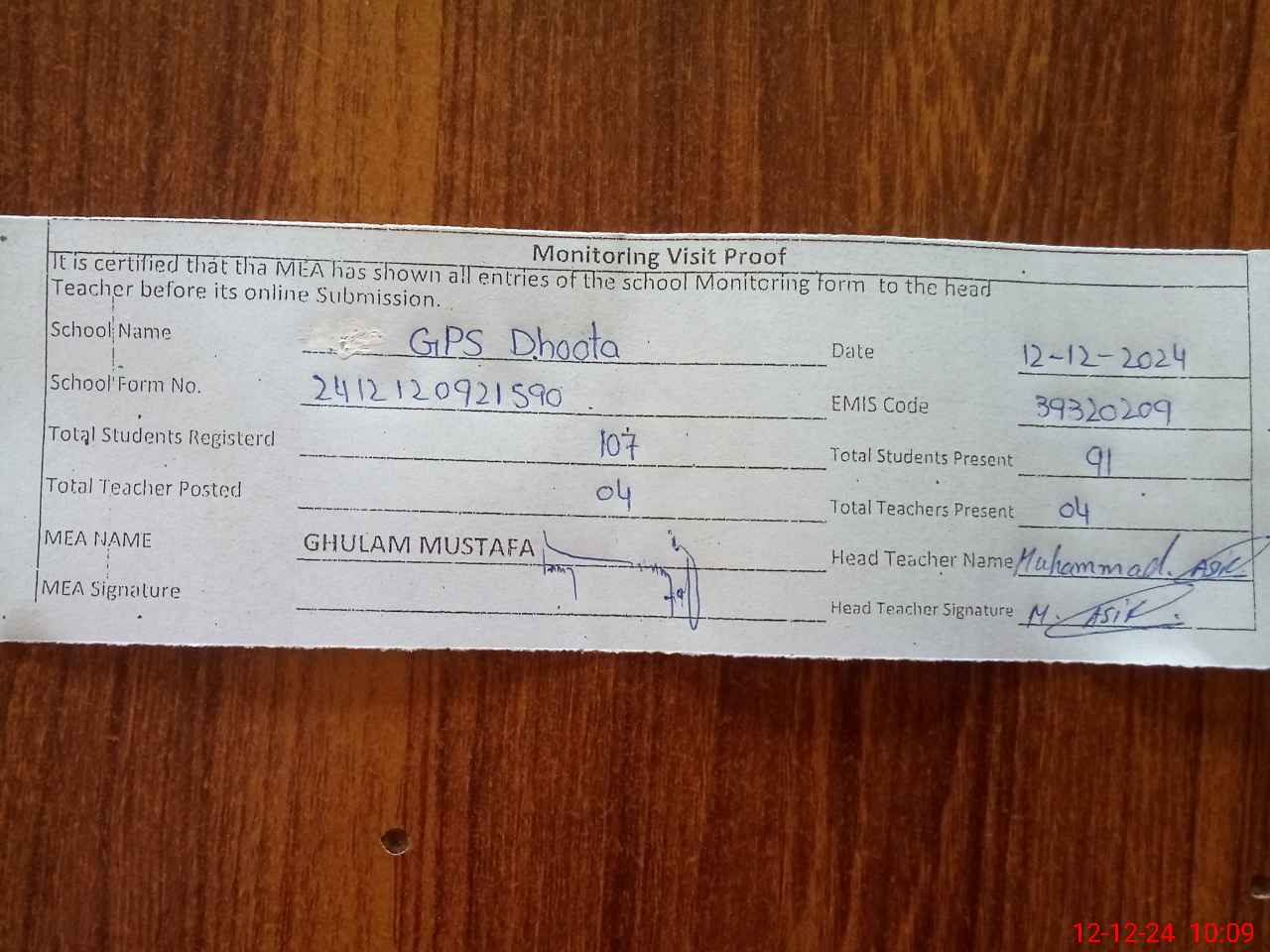 | EMIS Code: 39320209 | Name of School: GPS DHOOTA | |||