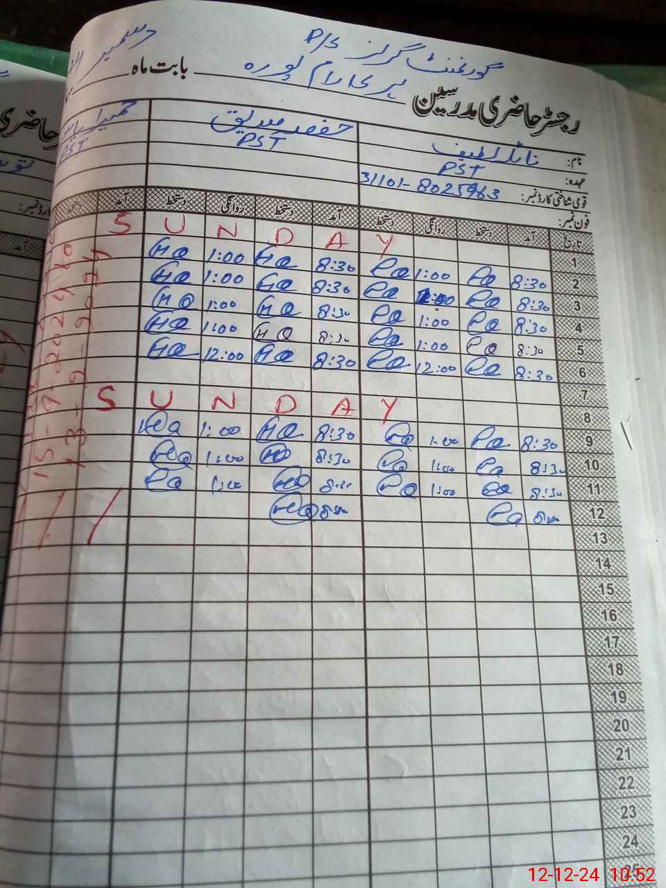 | Name: NA**** LA**** Designation: (School Headmaster's/Headmistress's) PST Phone/Cell Number: 03**** |