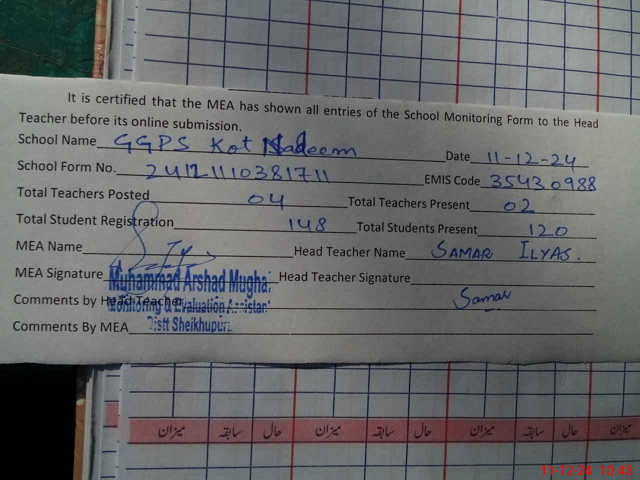 | EMIS Code: 35430988 | Name of School: GGPS KOT NADEEM | |||
