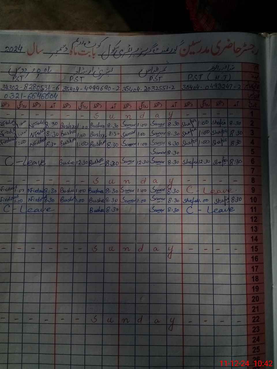 | Name: Sh**** An**** Designation: (School Headmaster's/Headmistress's) PST Phone/Cell Number: 03**** |