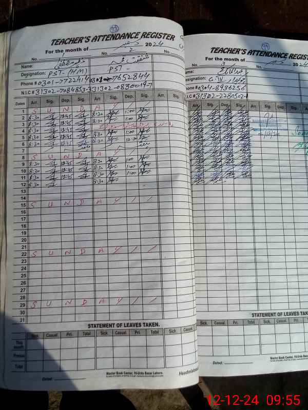 | Name: MA**** MU**** Designation: (School Headmaster's/Headmistress's) PST Phone/Cell Number: 03**** |