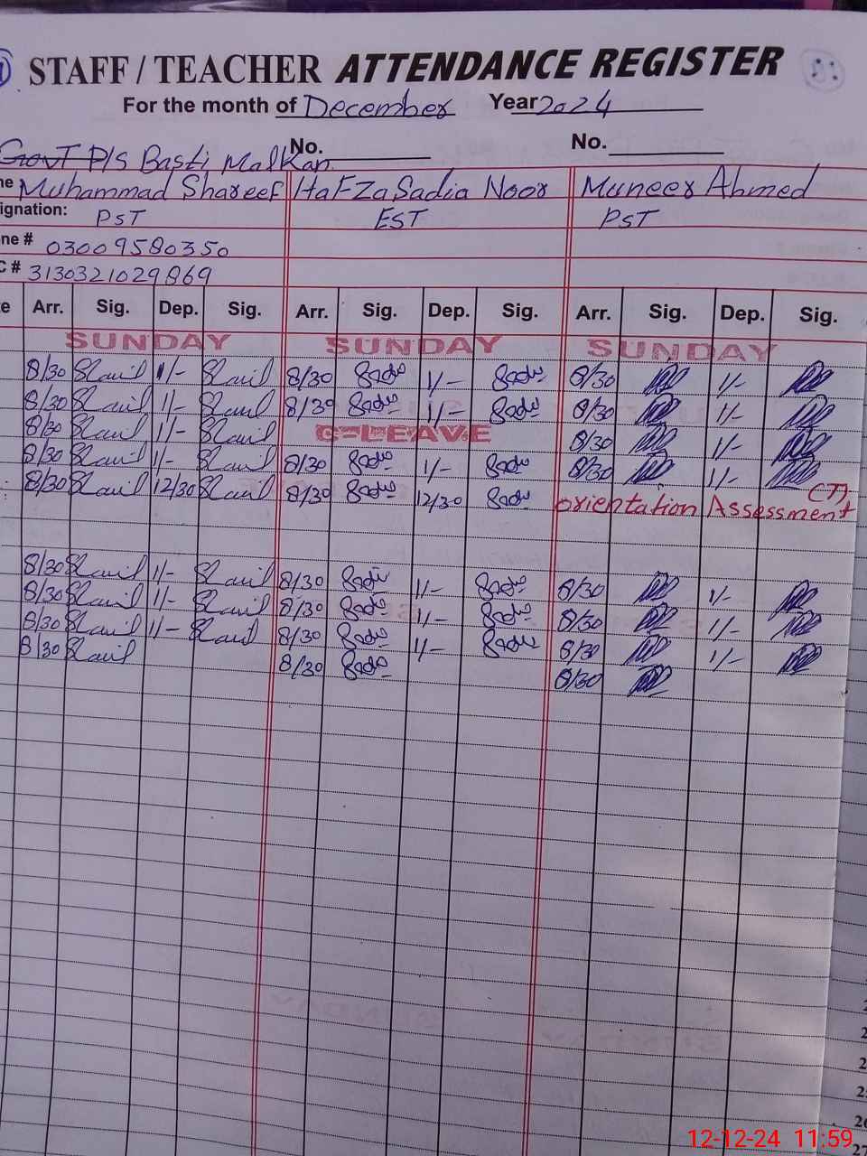 | Name: Mo**** SH**** Designation: (School Headmaster's/Headmistress's) PST Phone/Cell Number: 03**** |