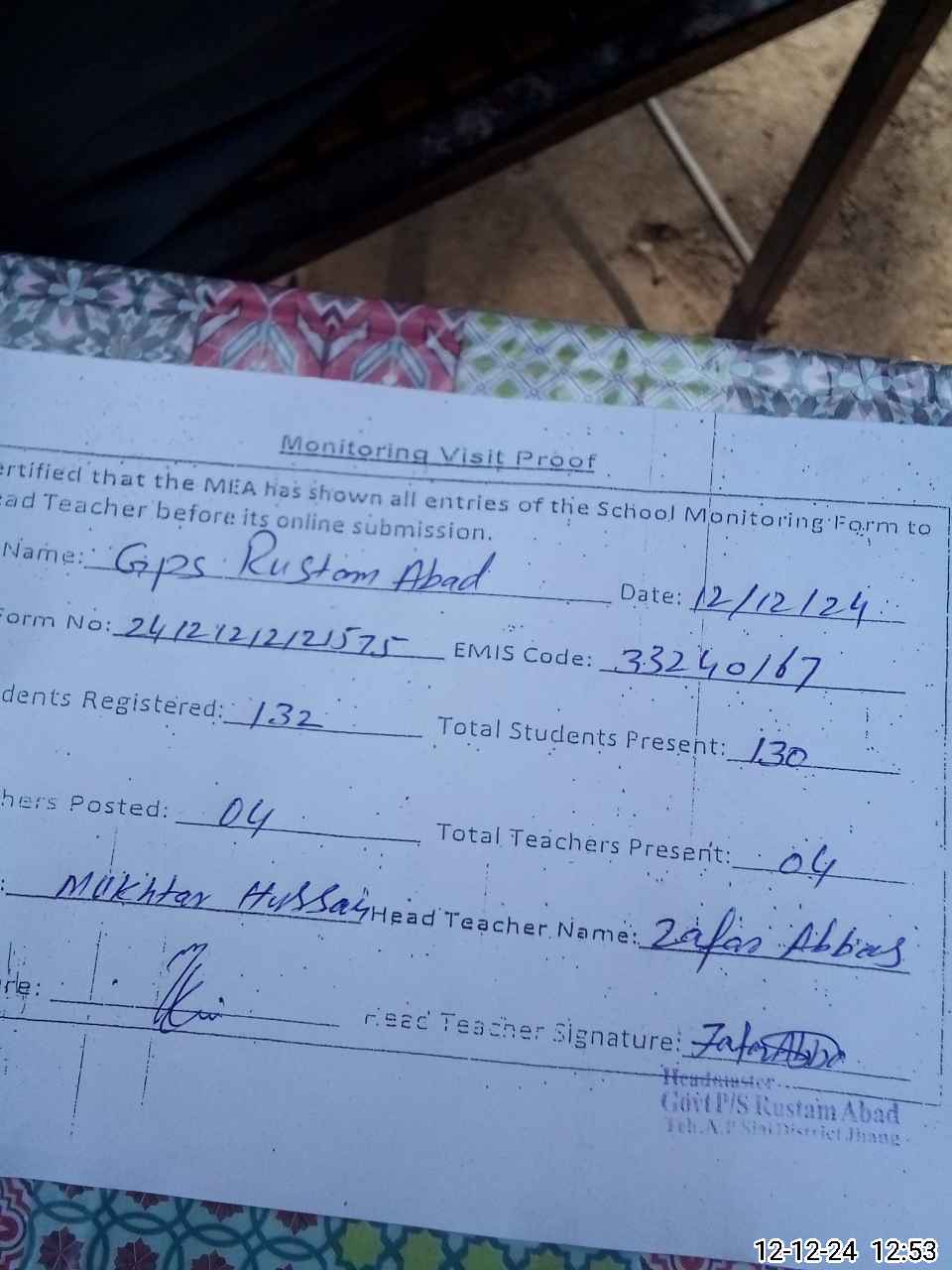 | EMIS Code: 33240167 | Name of School: GPS RUSTAM ABAD | |||
