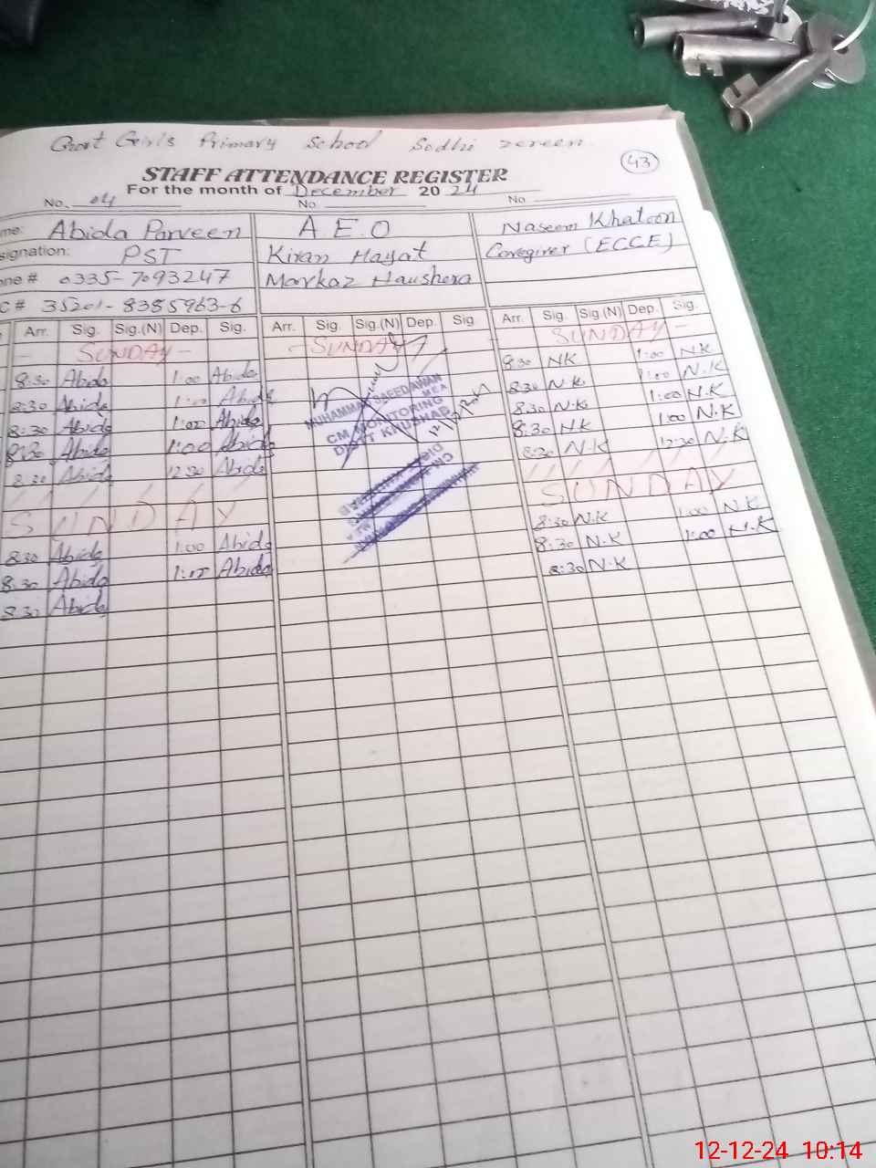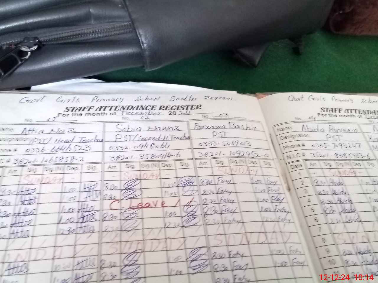 | CNIC | Full Name | Designation | R/C | Absence During Last Calender Month |