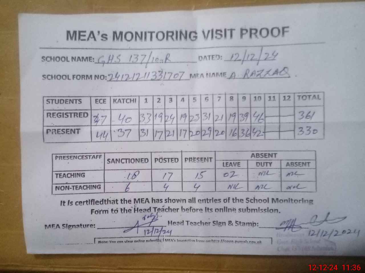 | EMIS Code: 36440035 | Name of School: GHS 137/10-R, JAHANIAN | |||