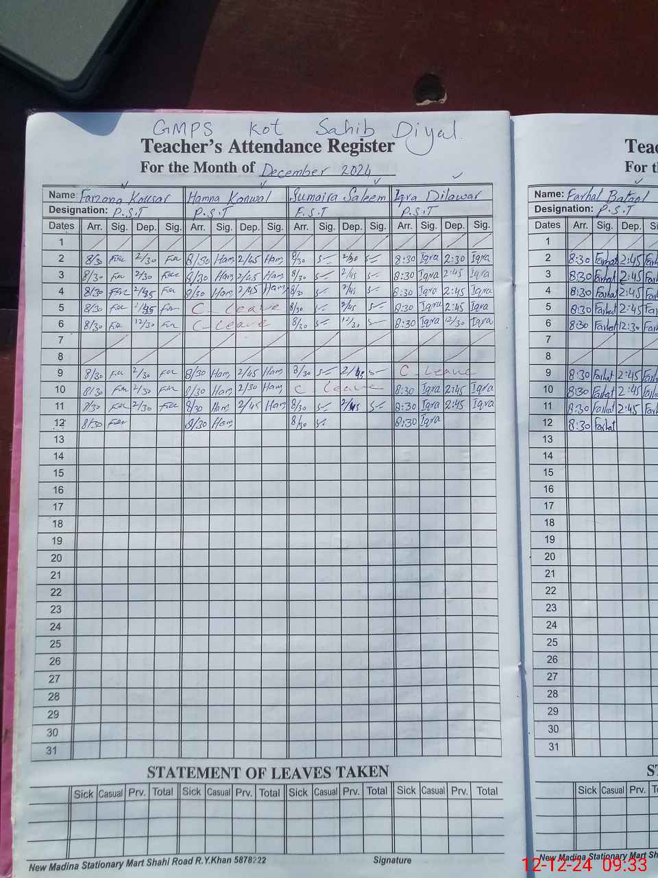 | EMIS Code: 31330609 | Name of School: GMPS KOT SAHIB DIYAL | |||