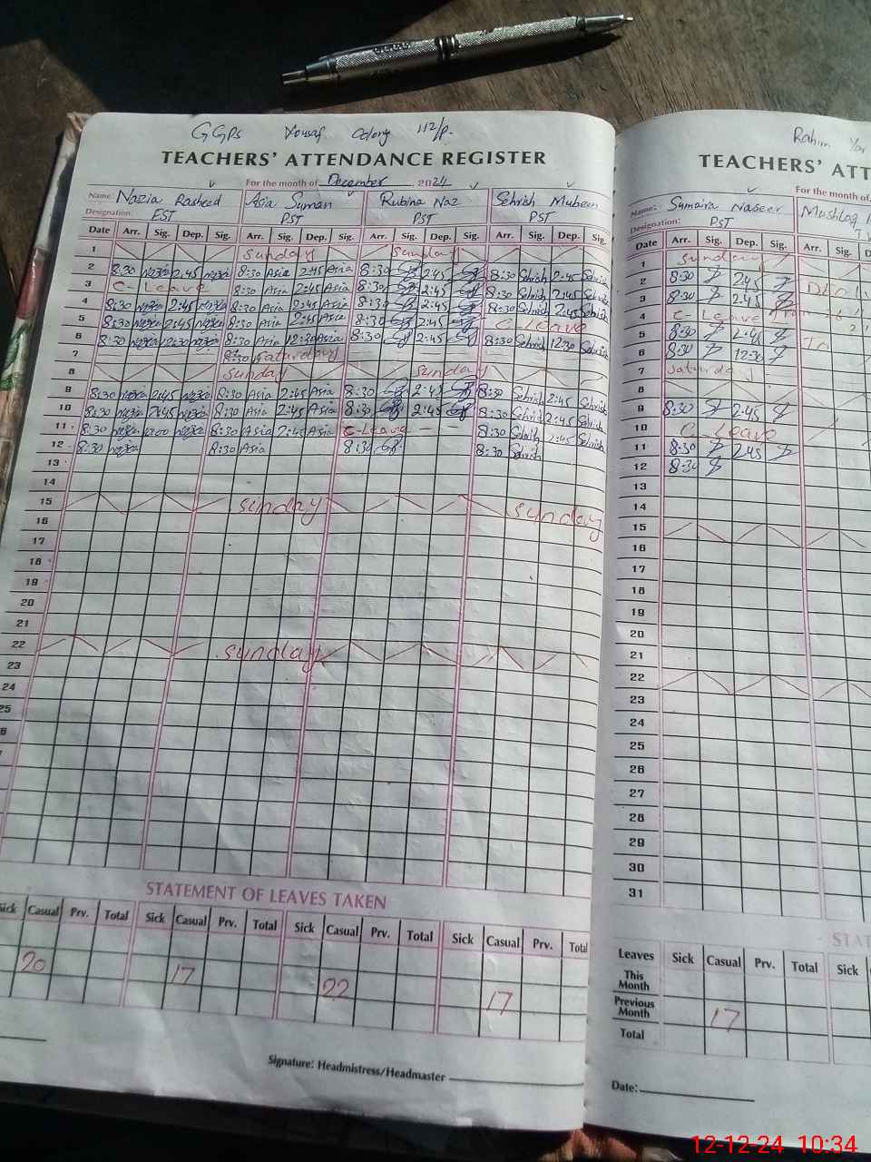 | CNIC | Full Name | Designation | R/C | Absence During Last Calender Month |