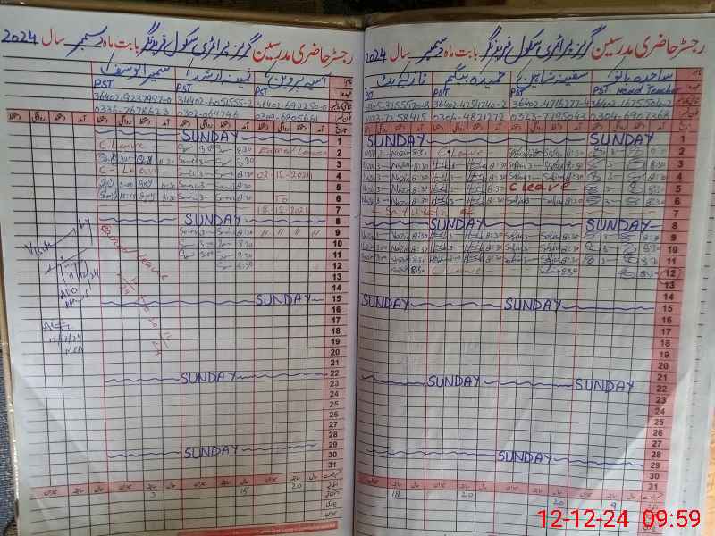 | CNIC | Full Name | Designation | R/C | Absence During Last Calender Month |