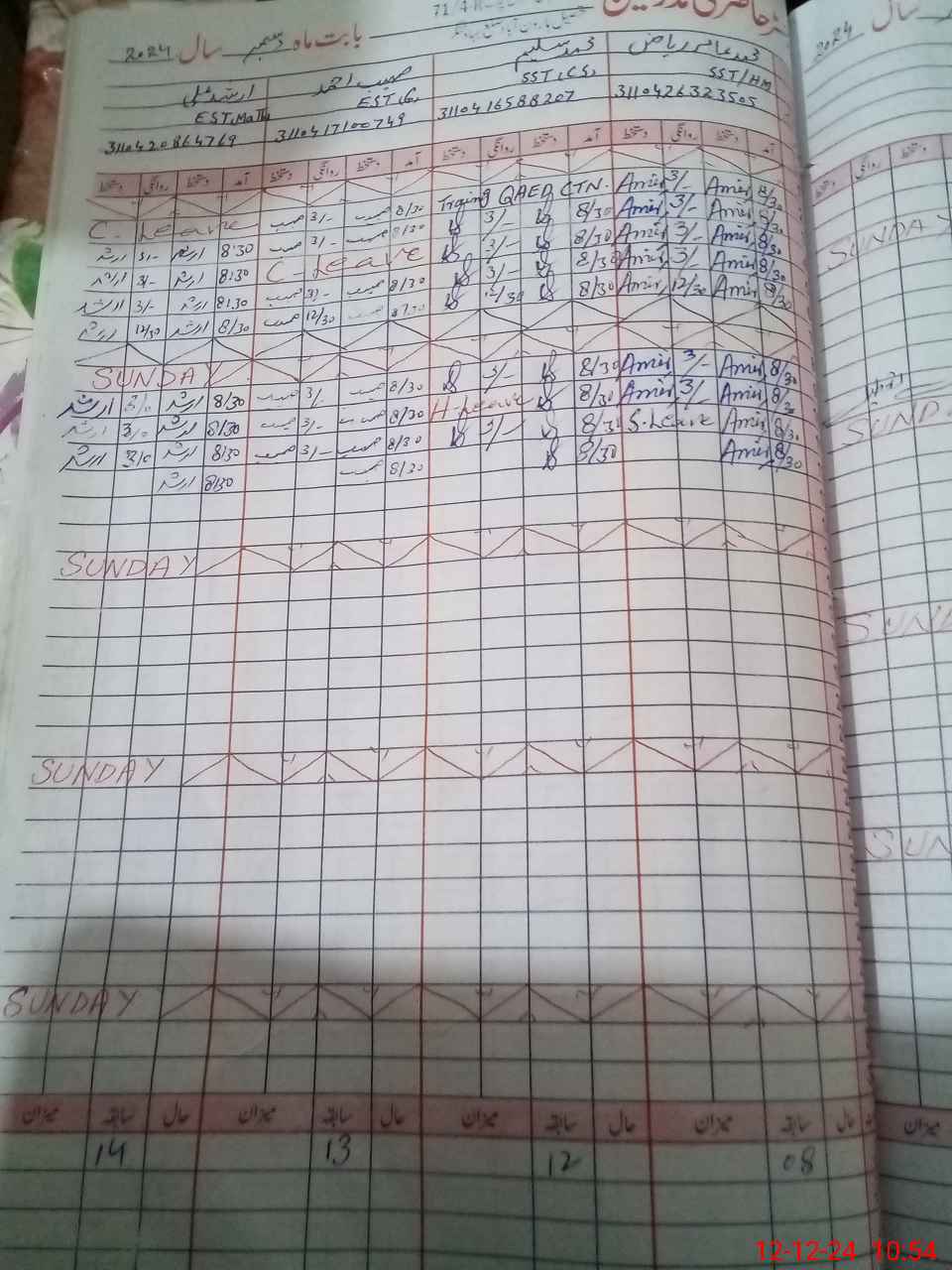 | CNIC | Full Name | Designation | R/C | Absence During Last Calender Month |