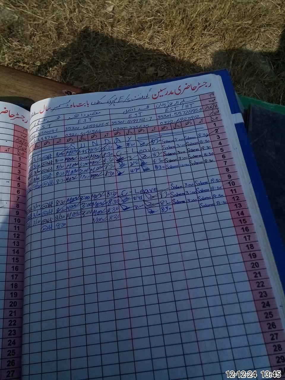 | CNIC | Full Name | Designation | R/C | Absence During Last Calender Month |