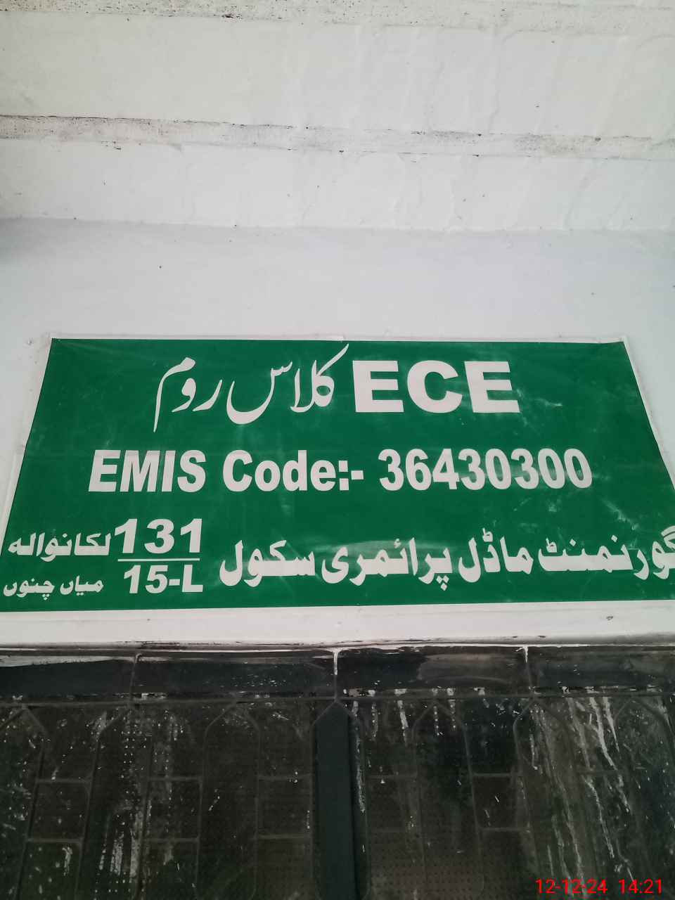 | EMIS Code: 36430300 | Name of School: GMPS 131/15-L, P/O 132/16-L, MIAN CHANNU | |||
