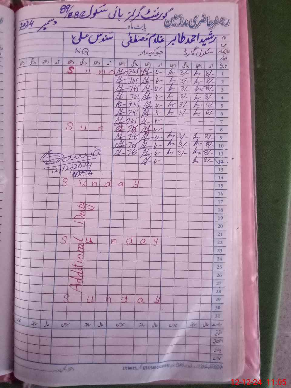 | Name: Uz**** Gi**** Designation: (School Headmaster's/Headmistress's) S.S.T.(GENERAL) Phone/Cell Number: 03**** |