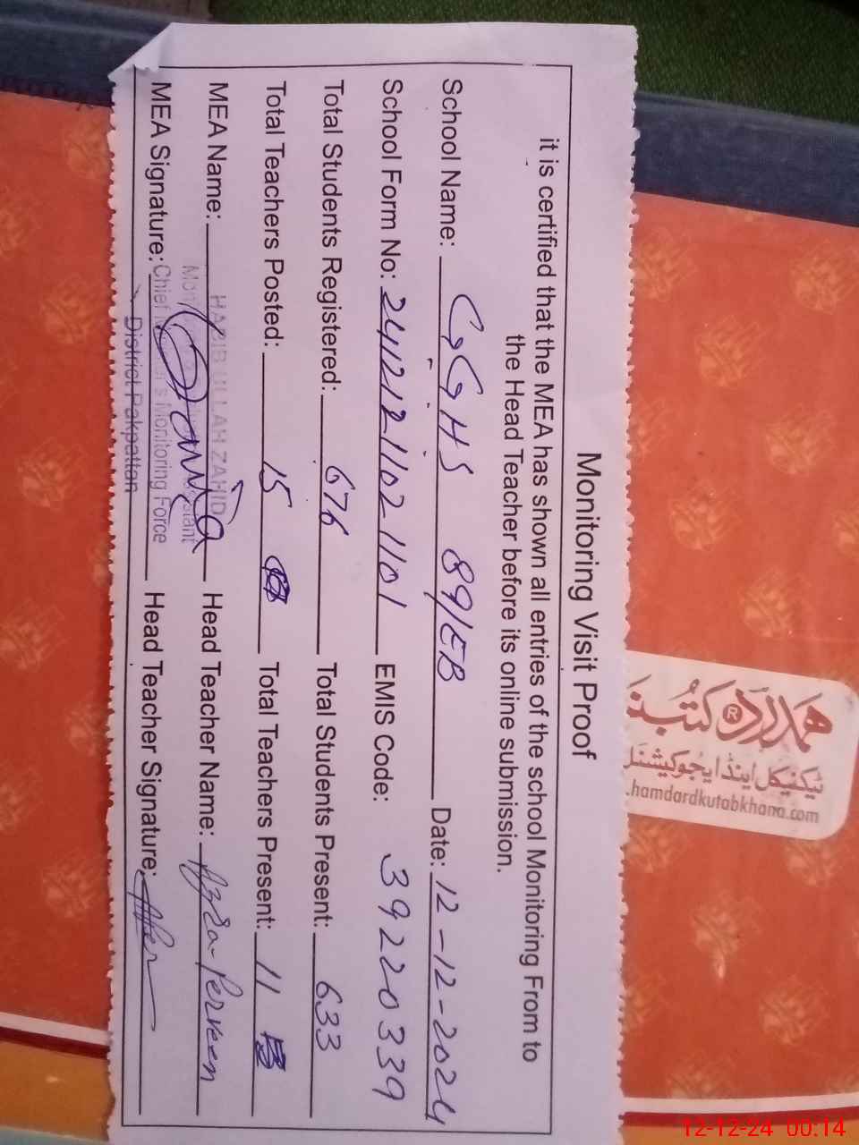 | EMIS Code: 39220339 | Name of School: GGHS 89/EB | |||