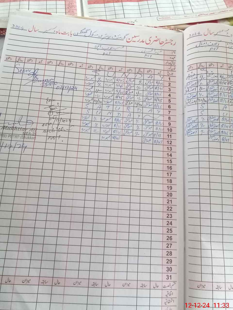 | CNIC | Full Name | Designation | R/C | Absence During Last Calender Month |
