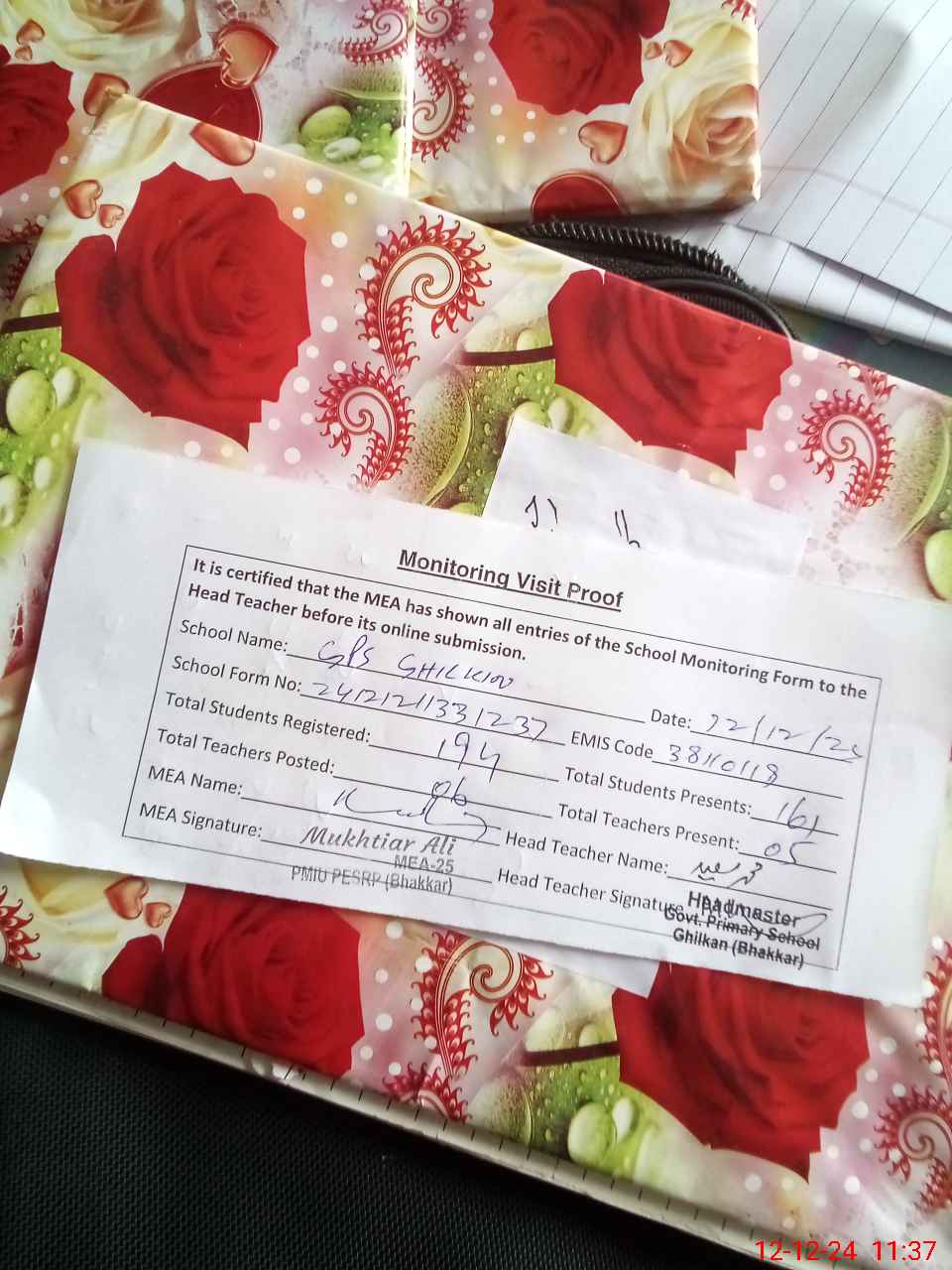 | EMIS Code: 38110119 | Name of School: GPS GHILKAN | |||