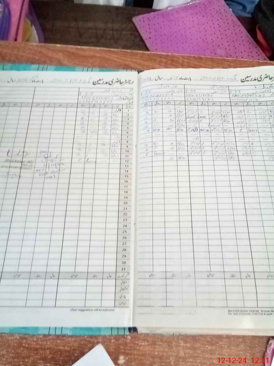 | CNIC | Full Name | Designation | R/C | Absence During Last Calender Month |
