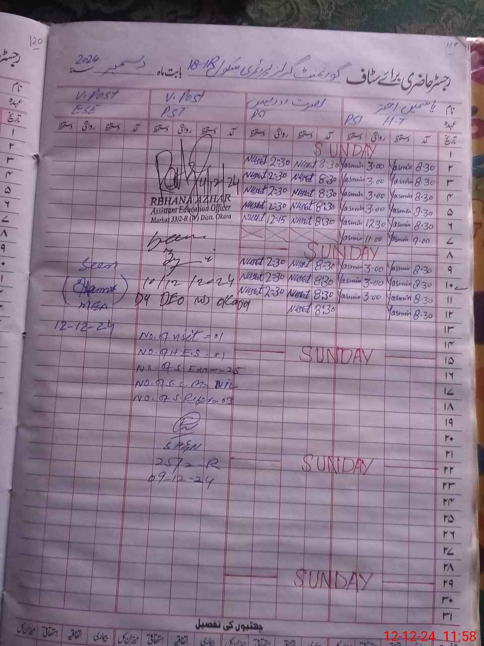 | District: OKARA | Tehsil: OKARA | Markaz: 33/2R - FEMALE | Level: Primary | |