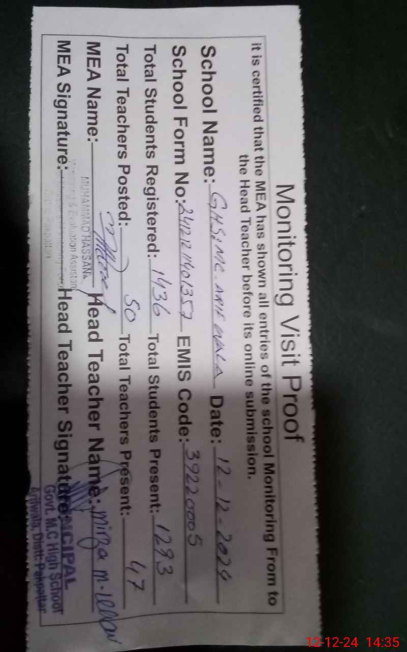 | EMIS Code: 39220005 | Name of School: GHS MC ARIF WALA | |||
