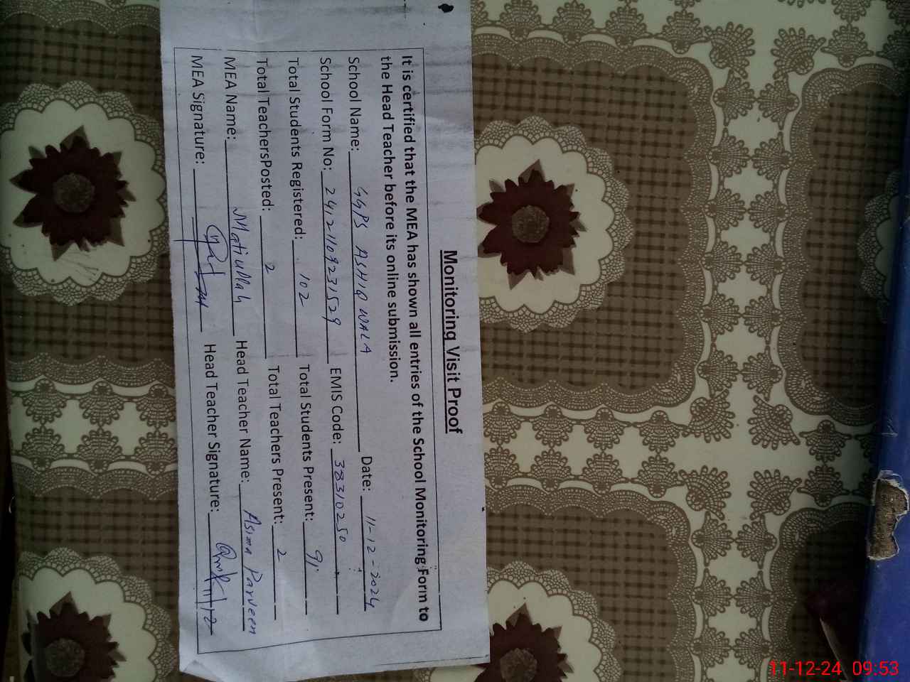 | Certified that this School was Inspected by the Undersigned MEA/DMO Today and the Information Stated Above is as Per Record. | |||||