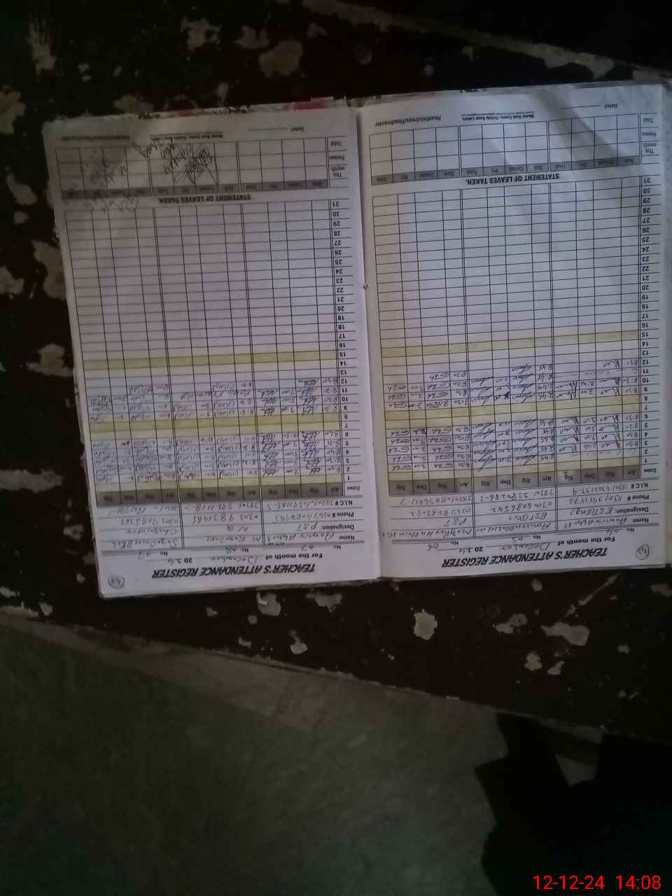 | CNIC | Full Name | Designation | R/C | Absence During Last Calender Month |